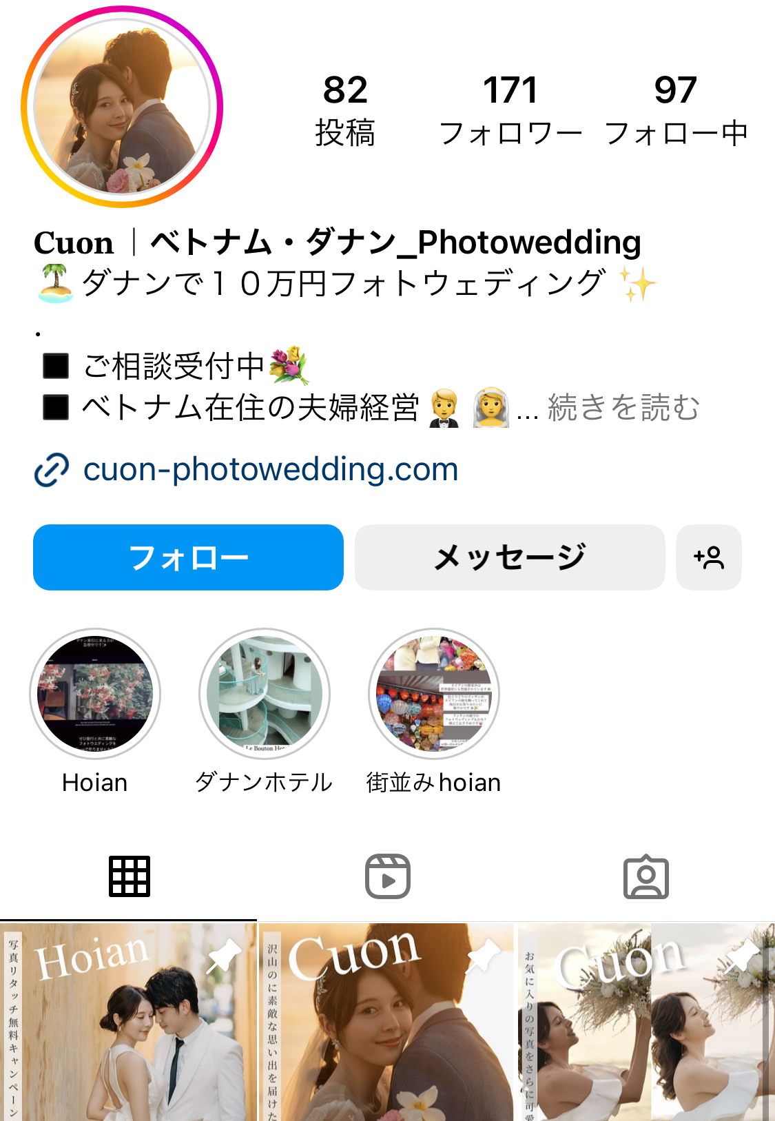 ダナン・ホイアンの日系フォトウェディング「Cuon」です。