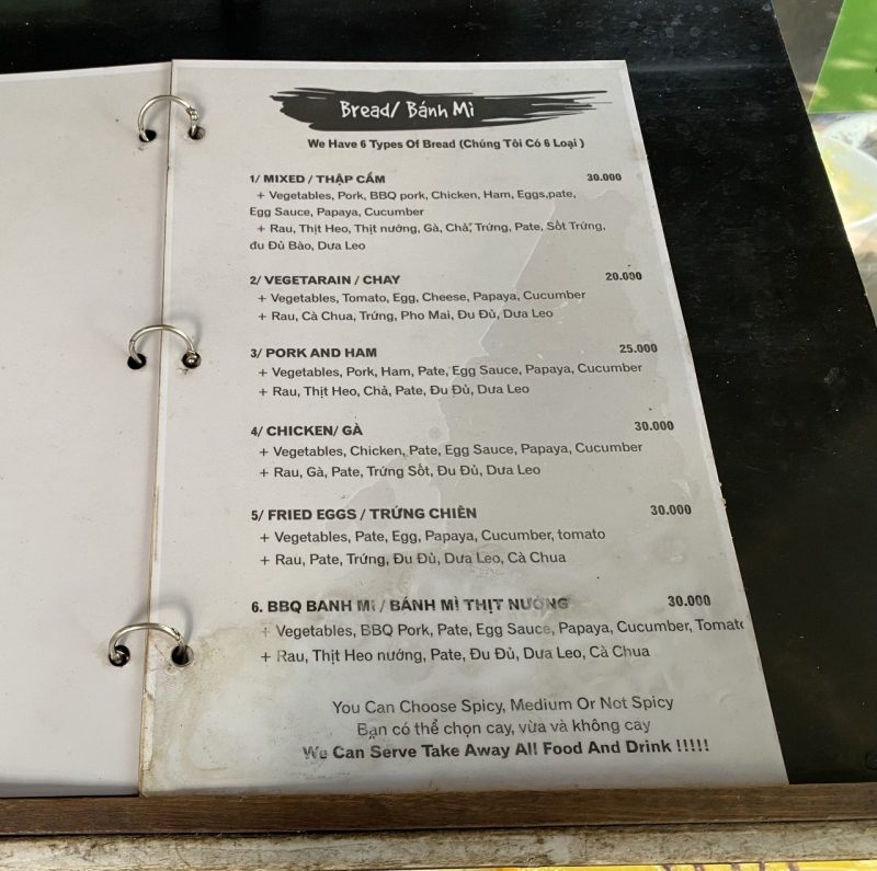 バインミーの値段は35,000ドン前後という安さ。(1つ210円くらい)