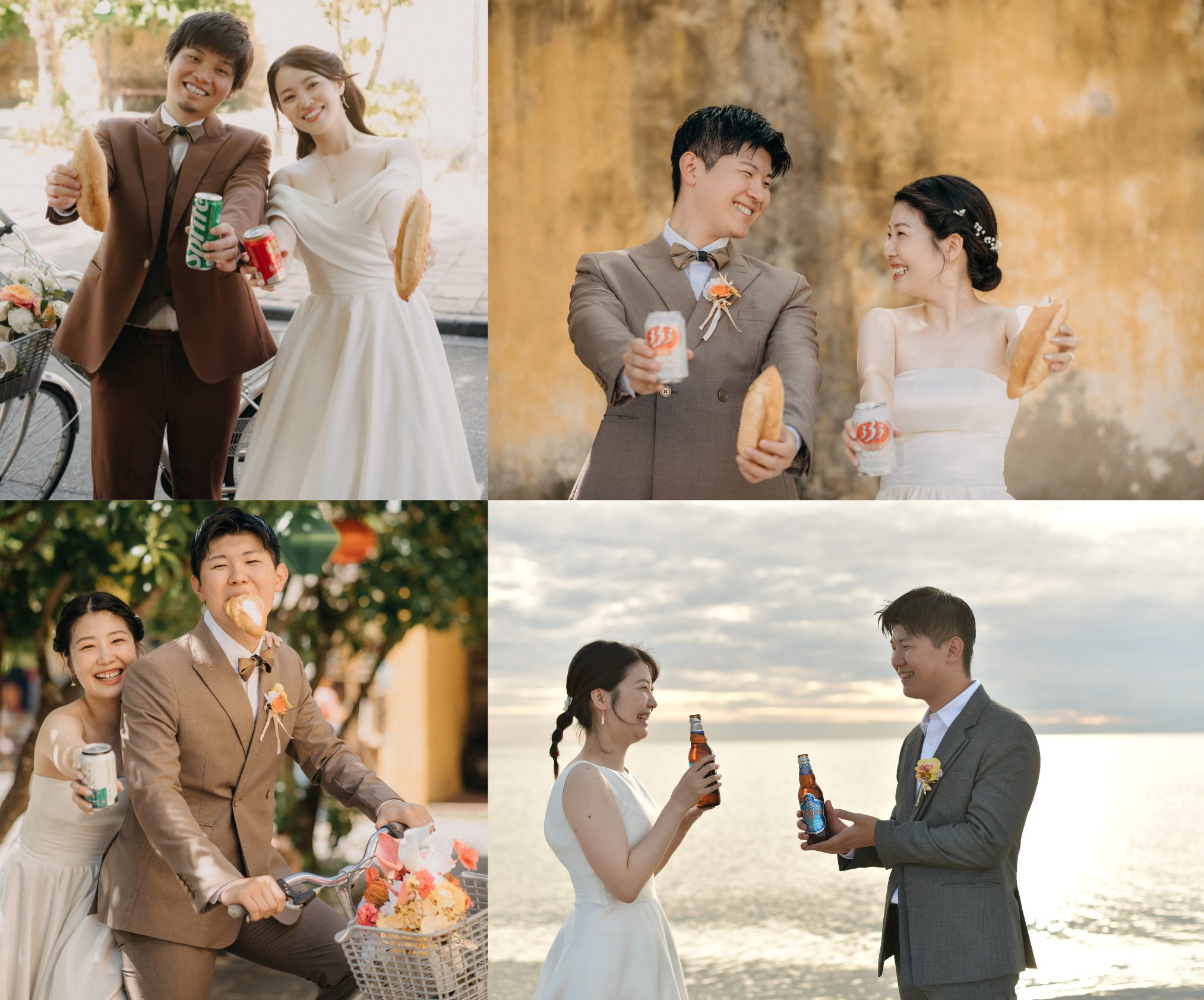 バインミーを食べながら、ベトナムのビールを飲みながらベトナムでしか味わえない撮影が人気。