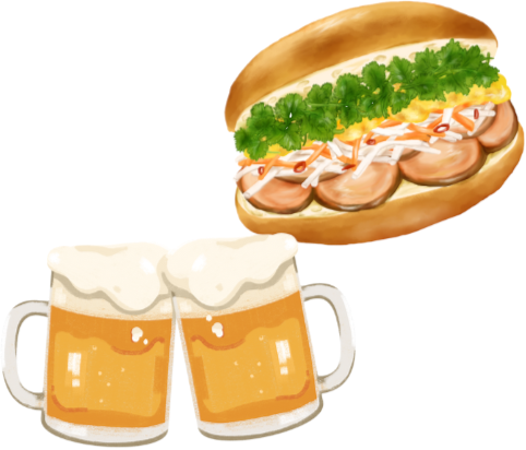バインミーを食べながら、ベトナムのビールを飲みながら